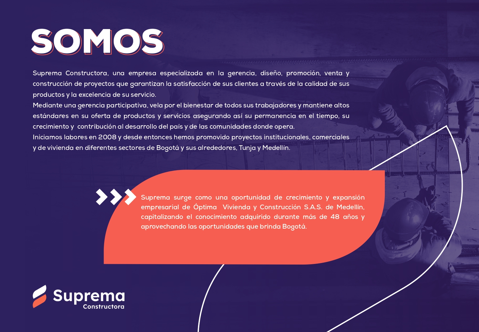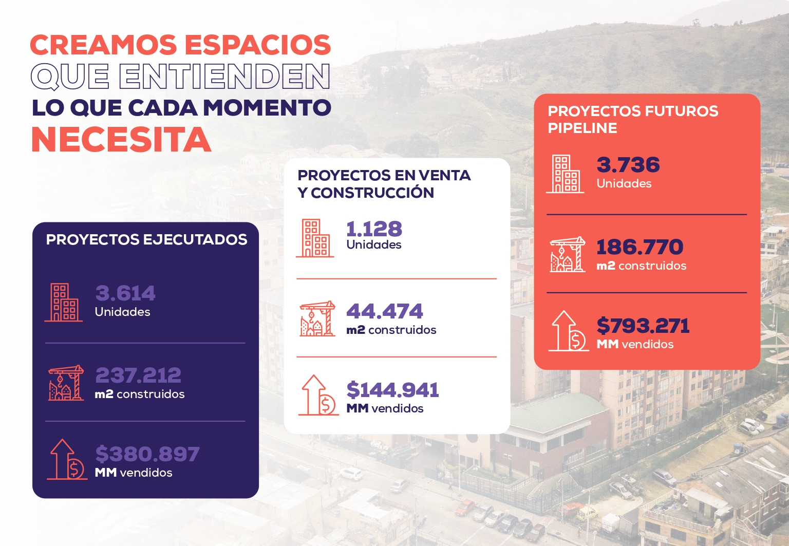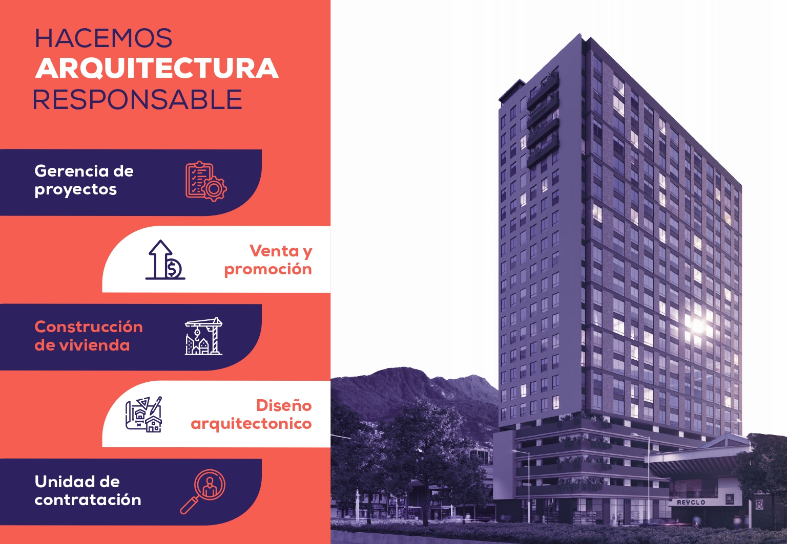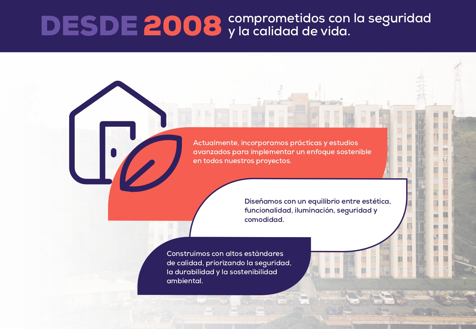 Somos una empresa enfocada en el diseño, promoción, gerencia, construcción y venta de proyectos inmobiliarios con los cuales buscamos satisfacer a nuestros clientes, garantizando la calidad y seguridad de nuestros productos y la excelencia en el servicio.